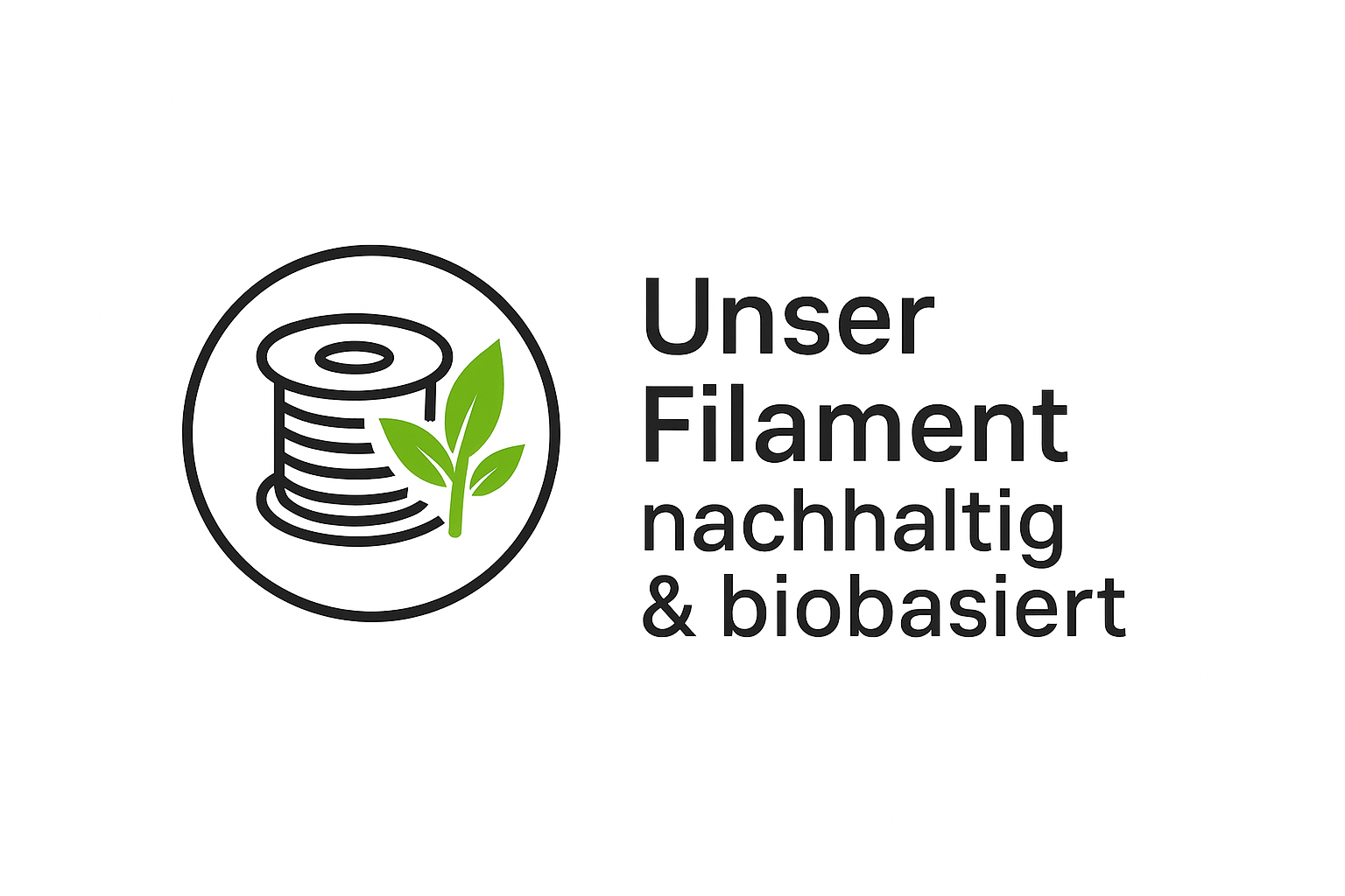 Unser Standard ist nachhaltiges, biobasiertes PLA-Filament. Für Produkte mit besonderen Anforderungen nutzen wir bei Bedarf andere Materialien – z. B. UV-beständige oder wasserfeste Kunststoffe.