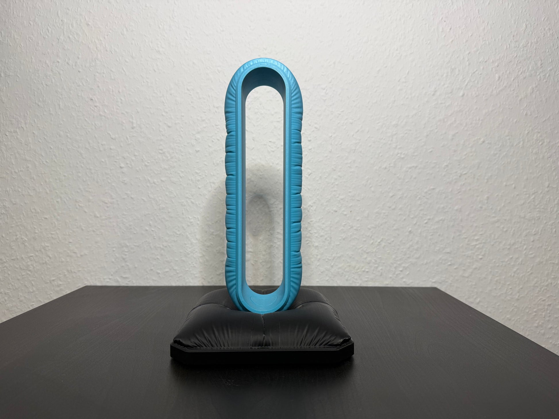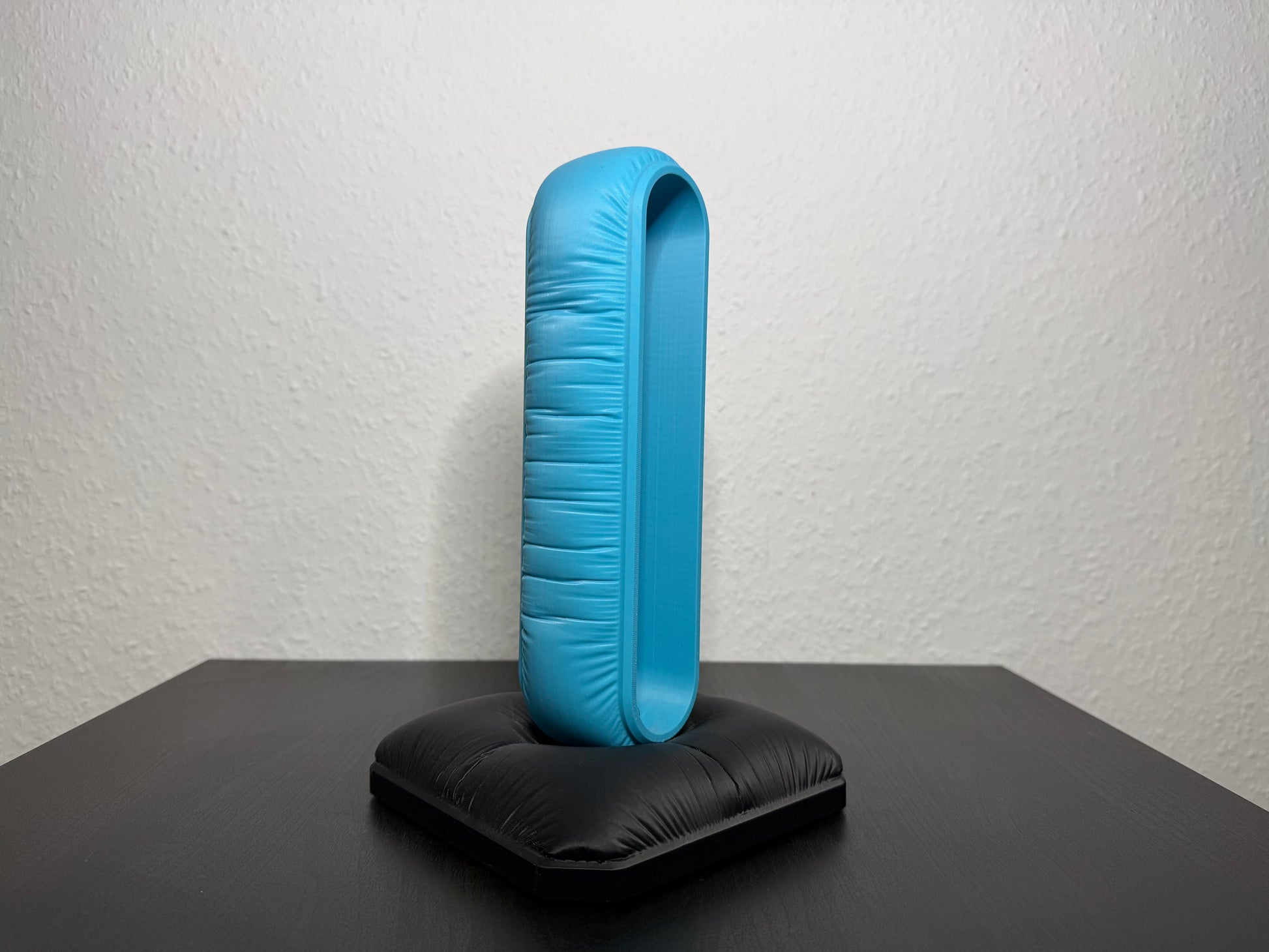 Dieser moderne 3D-gedruckte Kissen-Kopfhörerhalter kombiniert elegantes Design mit hoher Funktionalität. Die weiche Kissen-Optik der Basis sorgt für einen sicheren Stand und schützt gleichzeitig die Oberfläche, während der schlichte Haltebügel deine Kopfhörer ordentlich und griffbereit präsentiert.