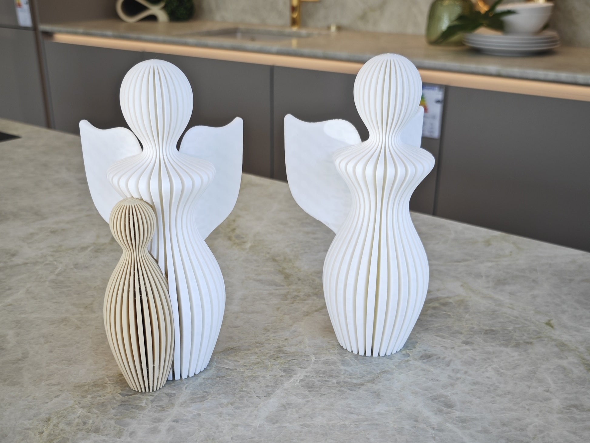 Diese stilvolle 3D-gedruckte Engelsfigur mit Kind vereint modernes Design mit tiefer Symbolik. Der Engel steht für Schutz und Geborgenheit, während die Kind-Figur das Band der Liebe und Fürsorge verkörpert. Gemeinsam bilden sie ein harmonisches und bedeutungsvolles Dekoelement für jedes Zuhause.