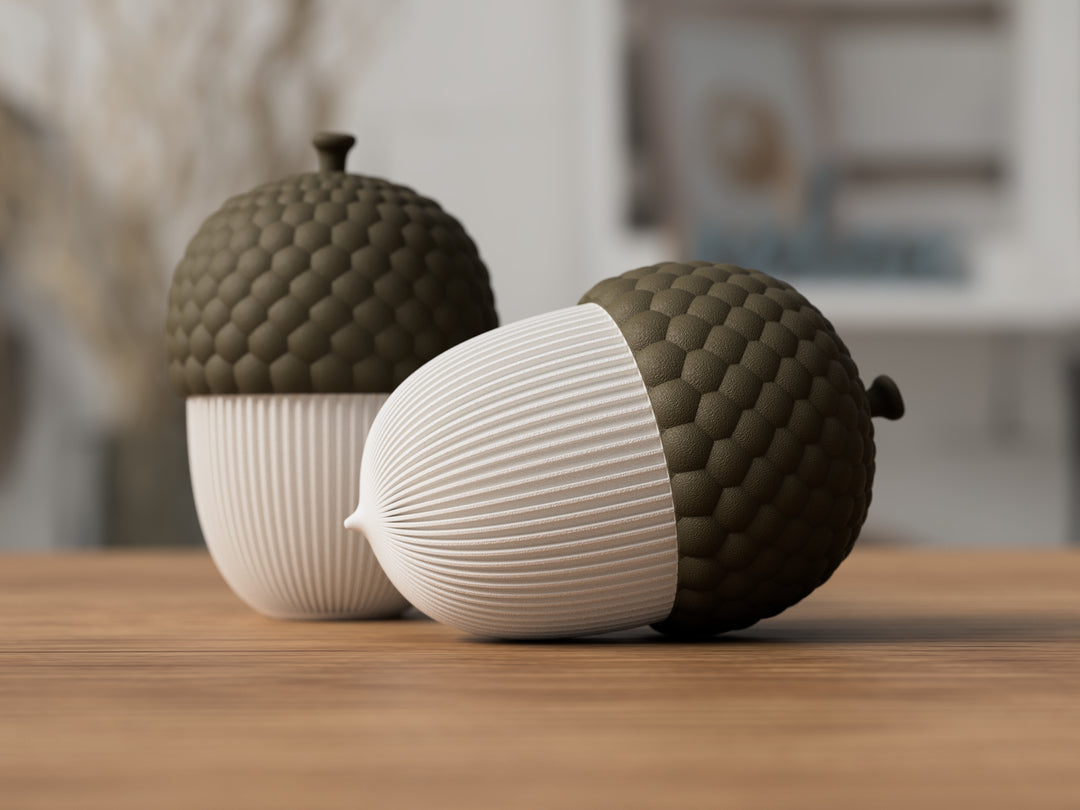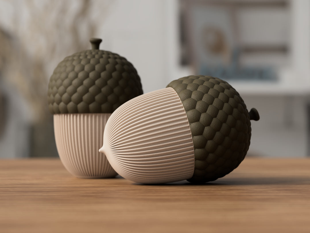 Diese 3D-gedruckte Eichel Aufbewahrungsdose verbindet moderne Deko mit praktischem Stauraum und eignet sich ideal für Schmuck, Schlüssel oder kleine Erinnerungen
