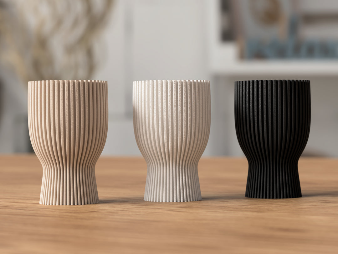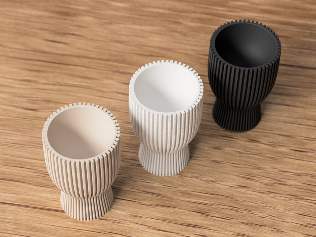 Dieser 3D-gedruckte Eierbecher vereint minimalistisches Design mit funktionaler Eleganz und bringt einen modernen Look auf deinen Frühstückstisch. Die feine Rillenstruktur sorgt für einen hochwertigen Charakter und macht den Becher zu einem kleinen, aber besonderen Detail in deiner Tischdekoration.