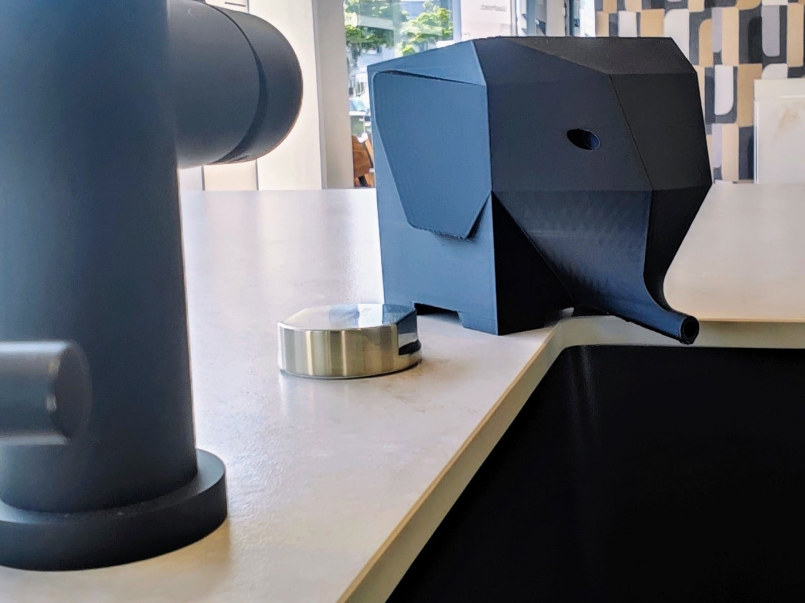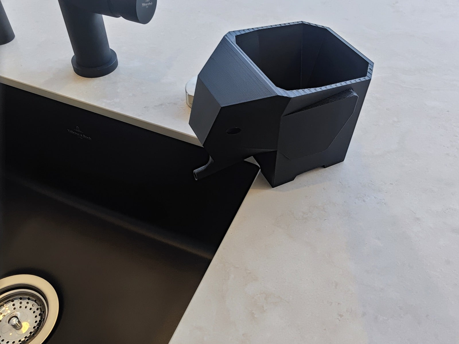 Dieser stilvolle Elefanten-Bestecktrockner ist ein echter Hingucker in jeder Küche. Platziere ihn einfach in der Nähe deines Spülbeckens – der Rüssel leitet überschüssiges Wasser direkt in die Spüle ab. So bleiben Arbeitsfläche und Besteck hygienisch trocken.