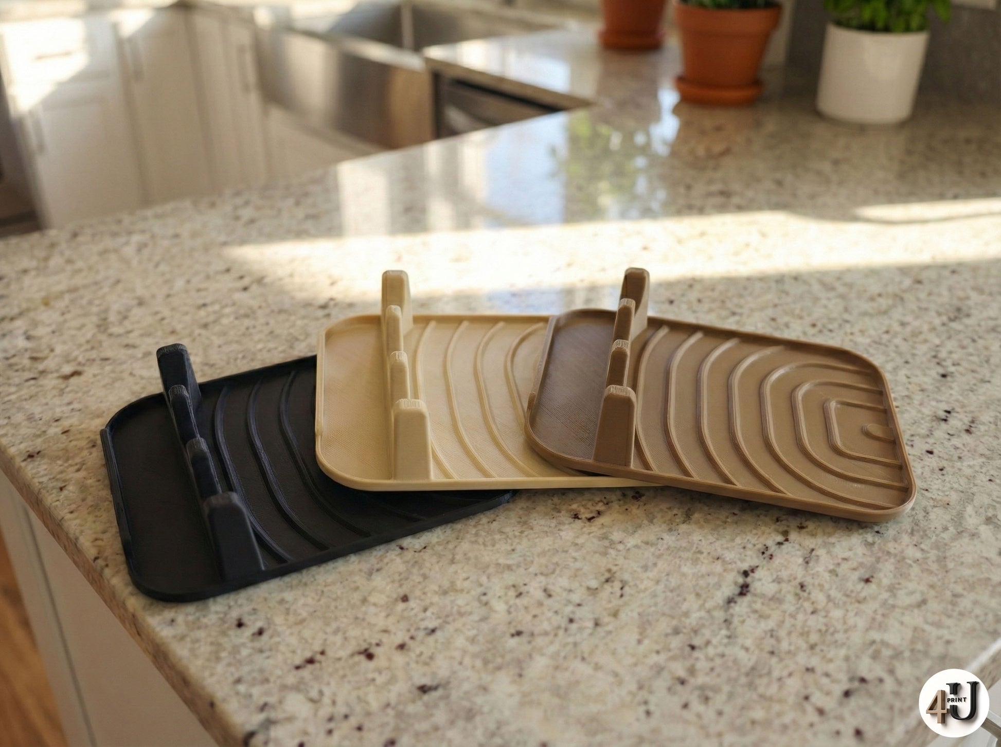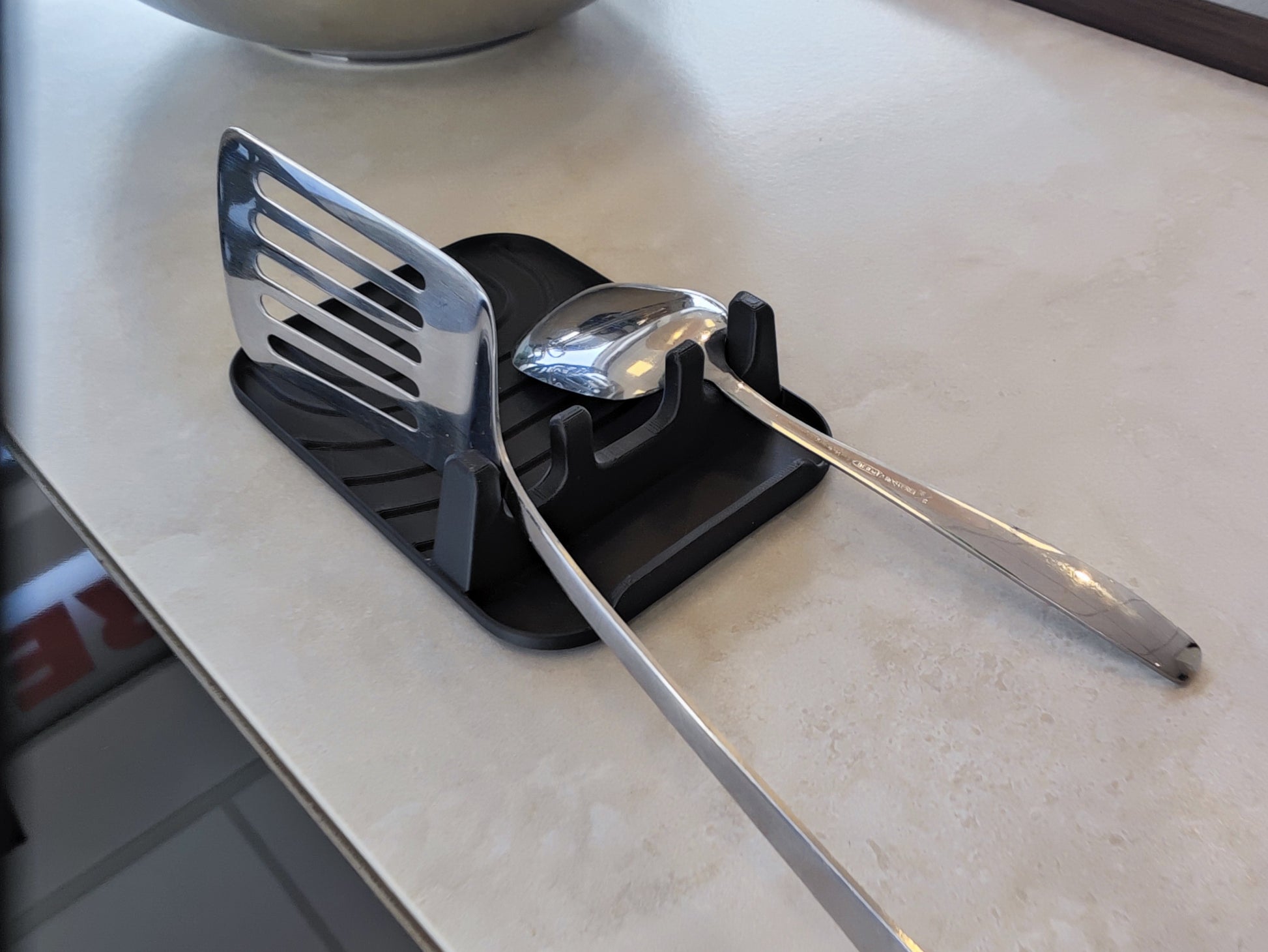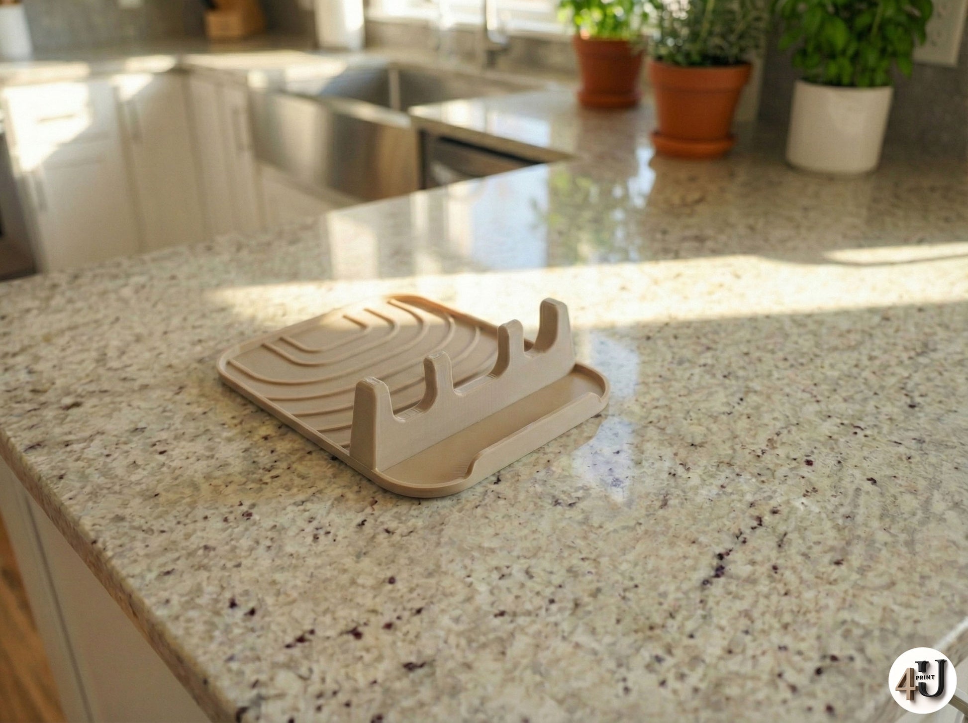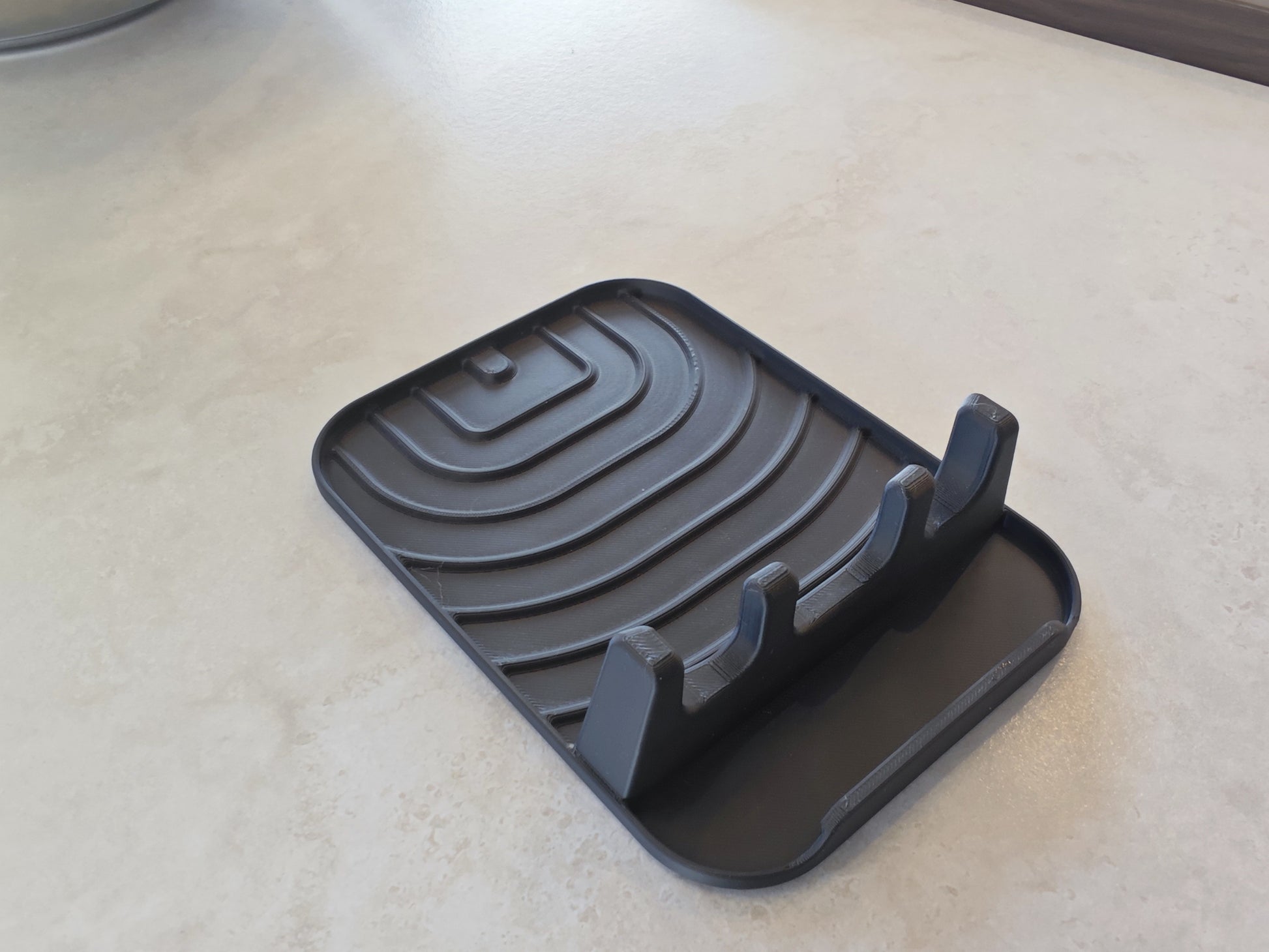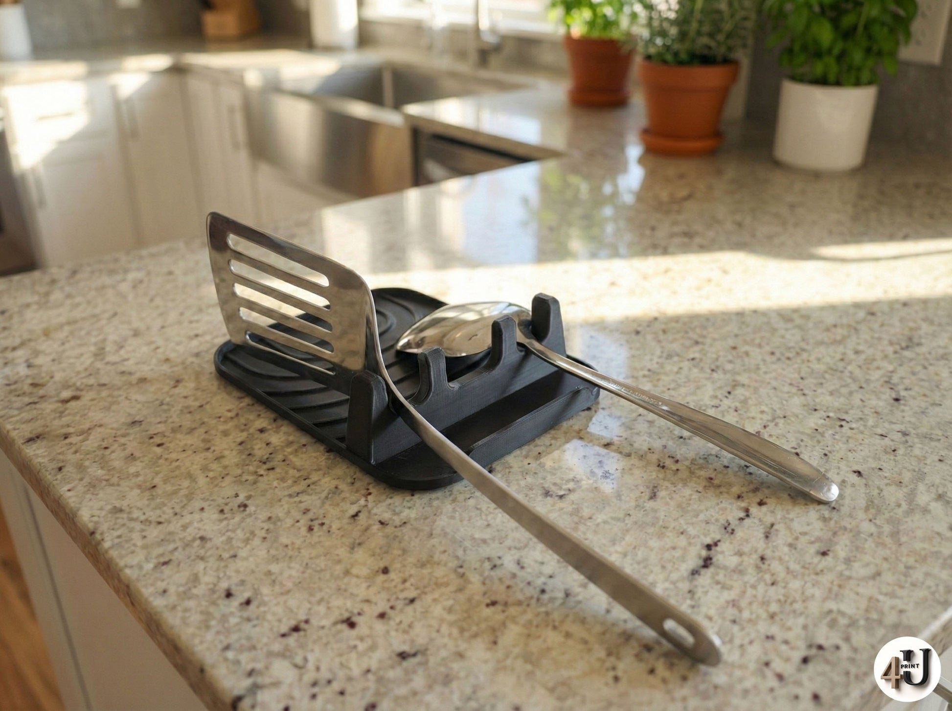 Diese moderne 3D-gedruckte Küchenablage sorgt für Ordnung und Sauberkeit beim Kochen. Ob Kochlöffel, Pfannenwender oder Schneebesen – alle Utensilien können bequem abgelegt werden, ohne die Arbeitsfläche zu verschmutzen. Das elegante Design mit sanften Linien und leichter Rillenstruktur fügt sich harmonisch in jede Küche ein.