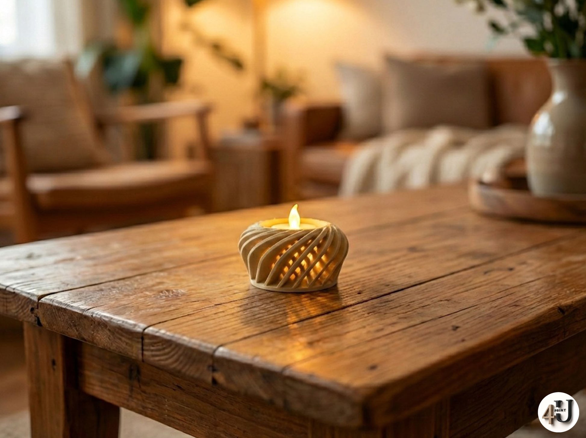 Dieser stilvolle 3D-gedruckte Teelichthalter besticht durch sein dynamisches Spiral-Design und setzt LED-Teelichter elegant in Szene. Die offene Struktur sorgt für ein faszinierendes Licht- und Schattenspiel und macht den Halter zu einem modernen Dekoelement für jeden Raum.