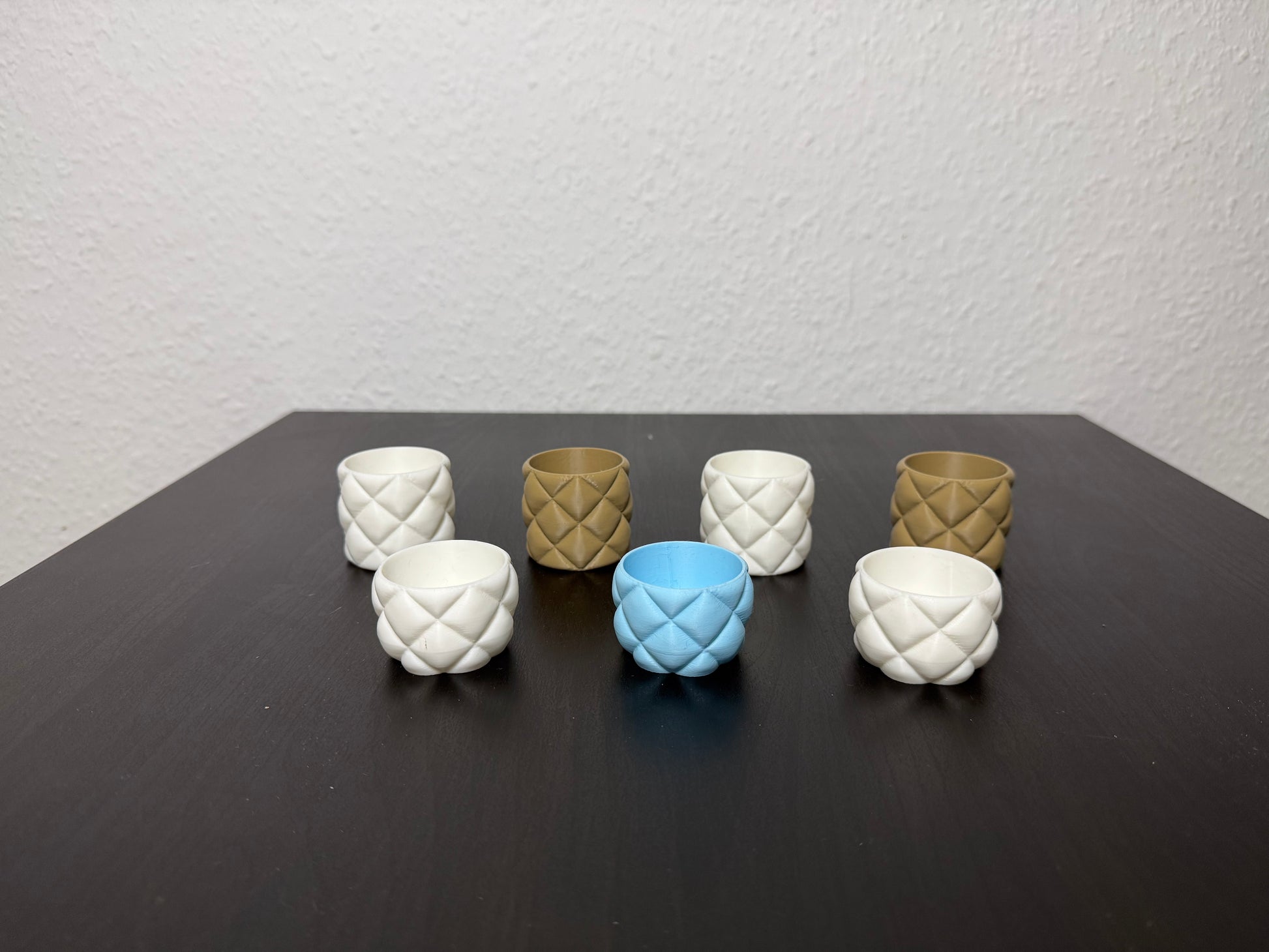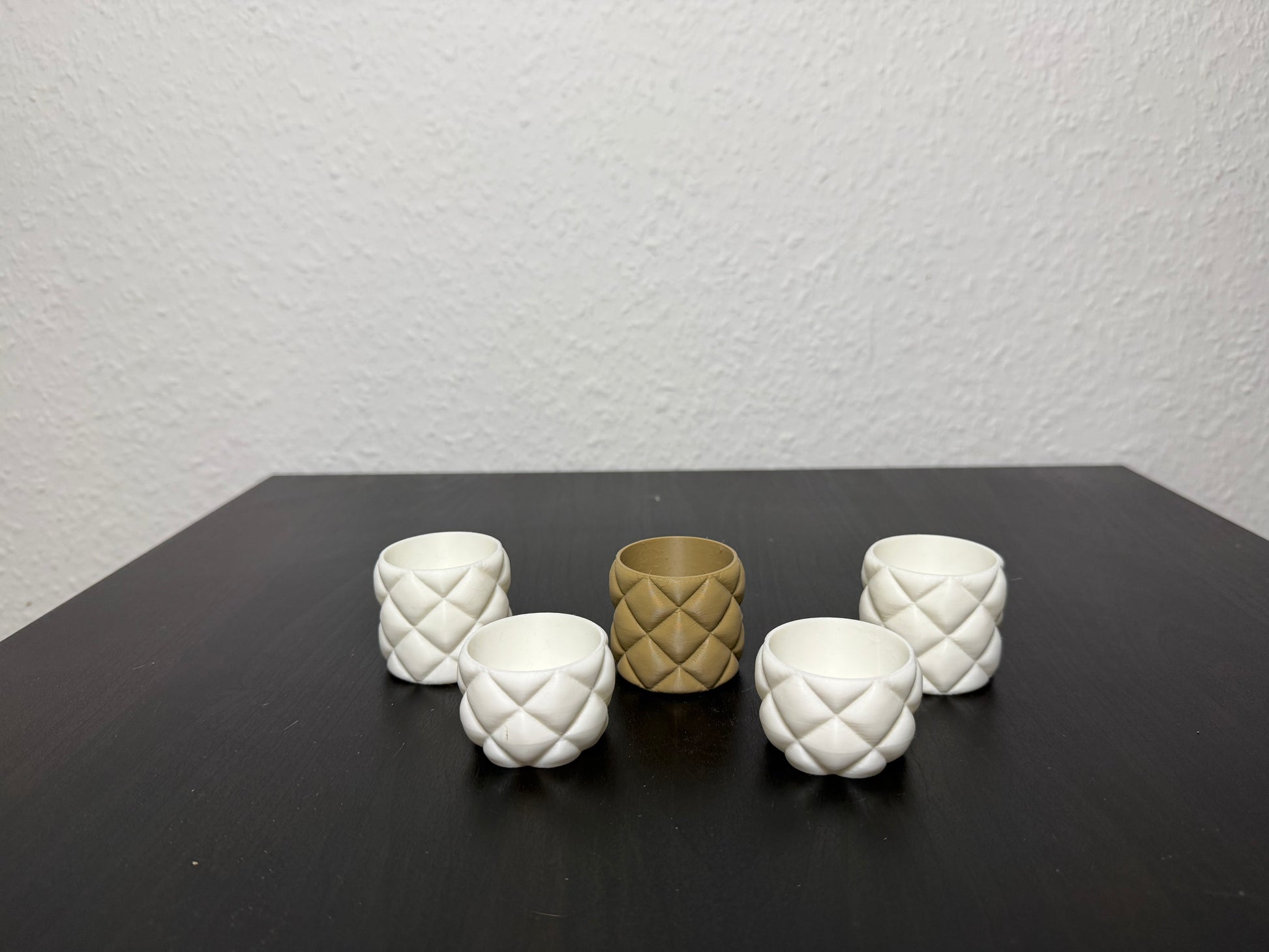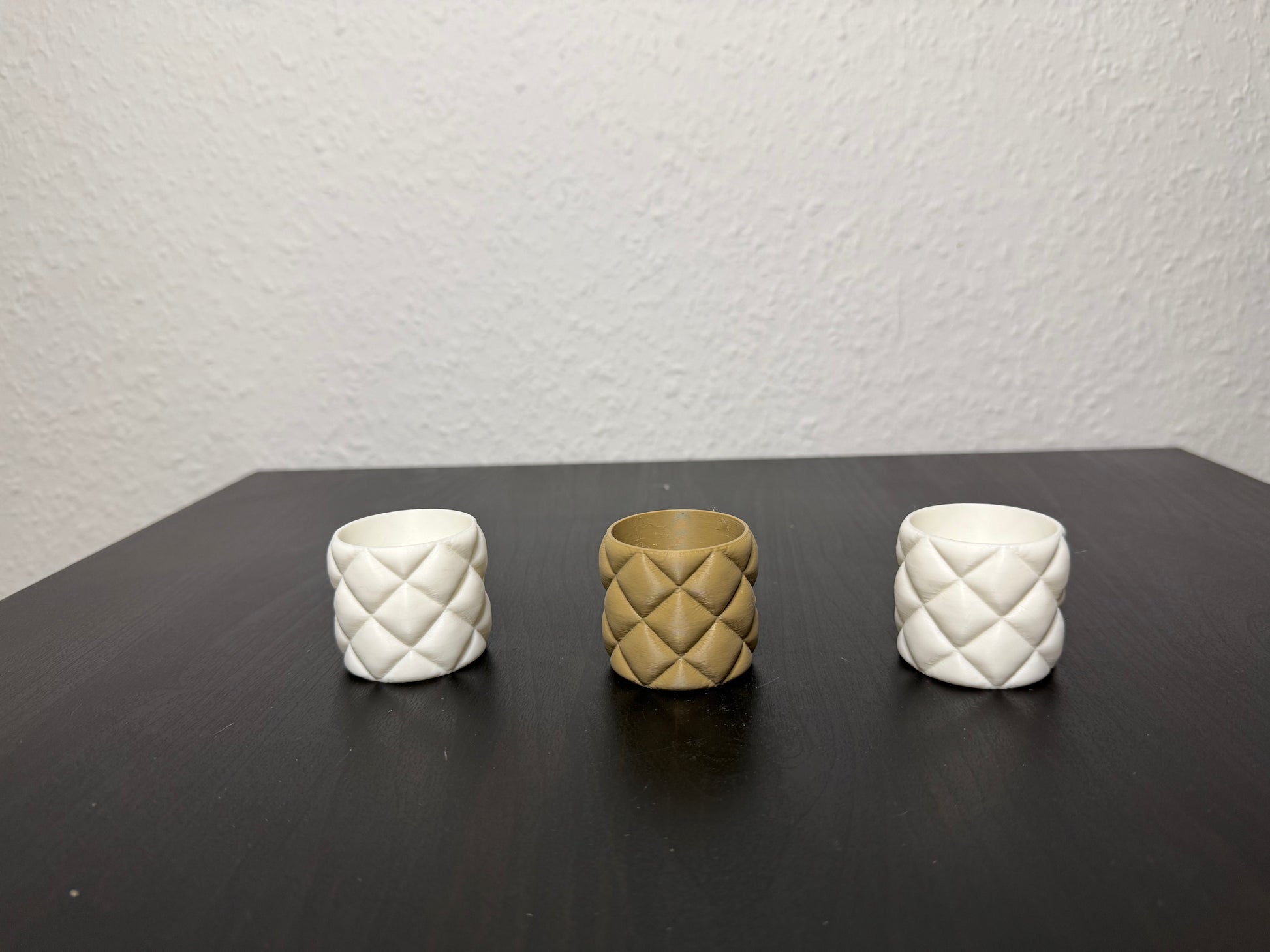 Dieser stilvolle 3D-gedruckte Teelichthalter beeindruckt mit seiner modernen Stepp-Optik und verleiht jedem Raum eine elegante Note. Ob einzeln oder in einer Gruppe dekoriert – er setzt LED-Teelichter stilvoll in Szene und sorgt für eine gemütliche Atmosphäre.