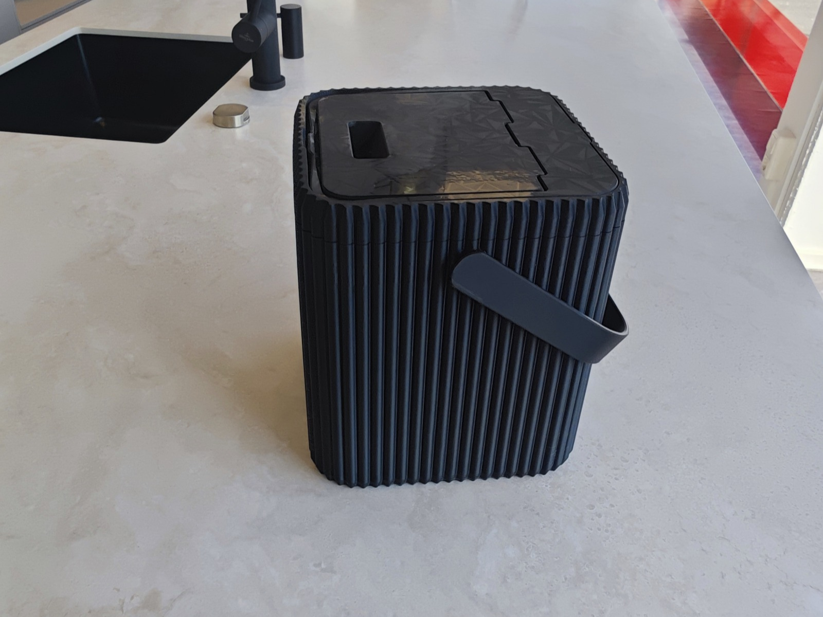 Dieser hochwertige 3D-gedruckte Küchen- & Tisch-Mülleimer verbindet edles Design mit durchdachter Funktion. Das geradlinige Rillen-Finish, der stabile Tragegriff und der präzise passende Deckel machen ihn zum eleganten Helfer auf Arbeitsplatte, Esstisch oder Beistellwagen – ideal für Bio-Müll, Küchenreste oder als Tisch-Mülleimer.