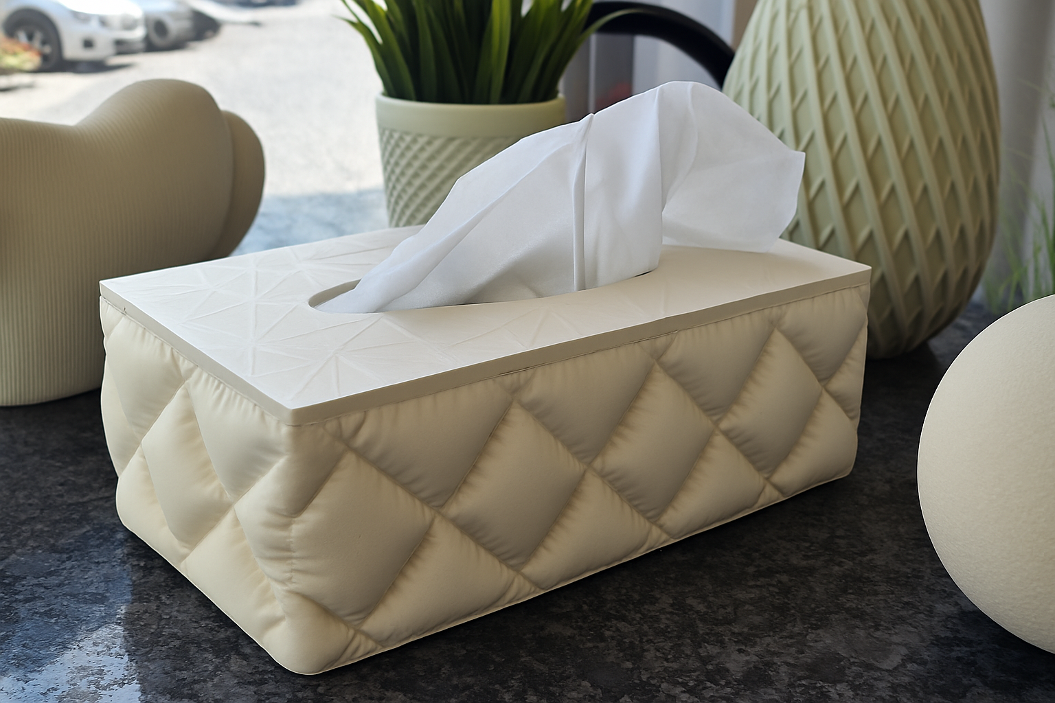 Dieser stilvolle 3D-gedruckte Taschentuchspender bringt Design und Funktionalität perfekt zusammen. Durch seine elegante, gesteppte Oberfläche wirkt die Box modern und hochwertig – ideal für Wohnzimmer, Schlafzimmer, Büro oder Badezimmer.