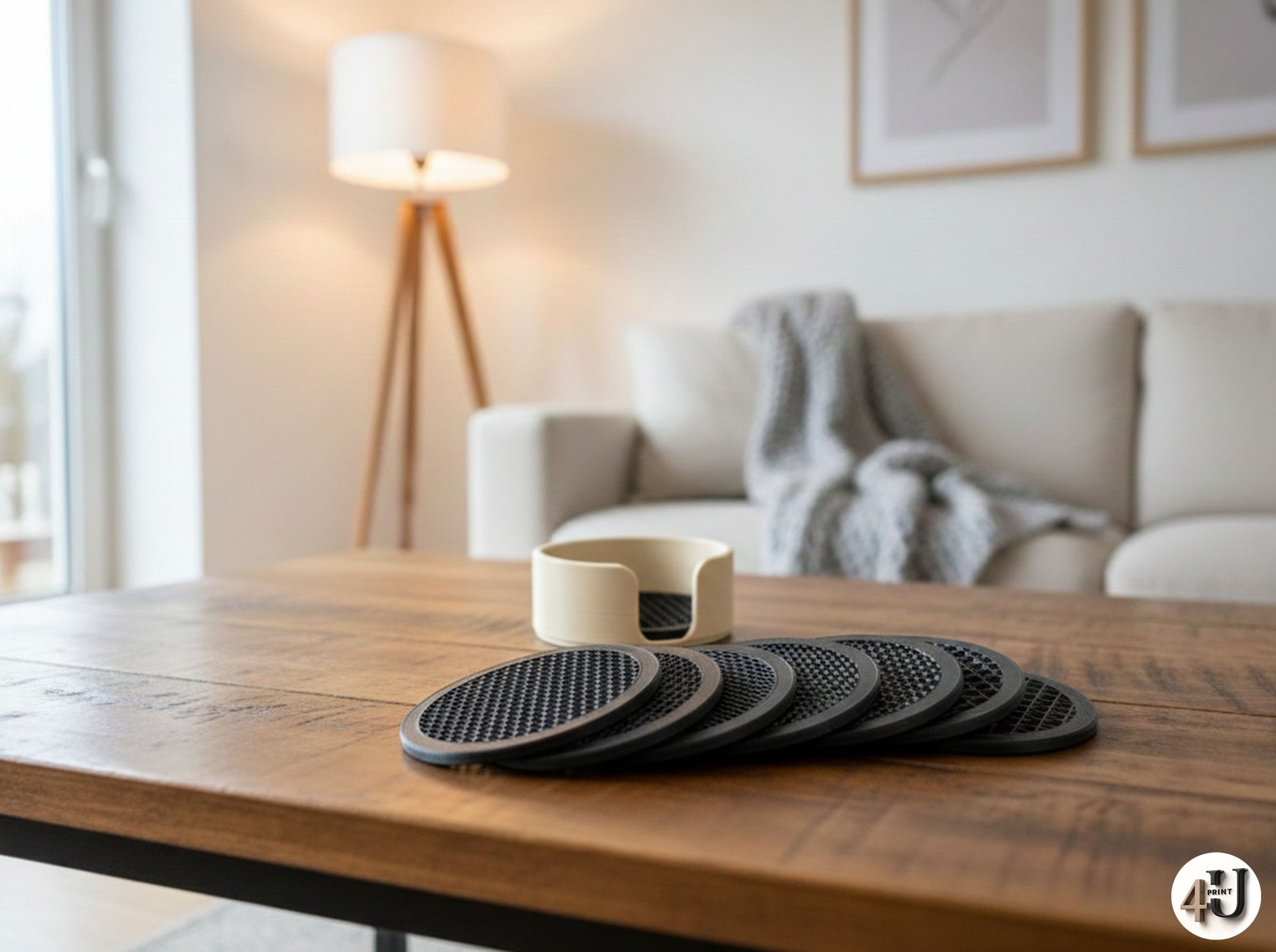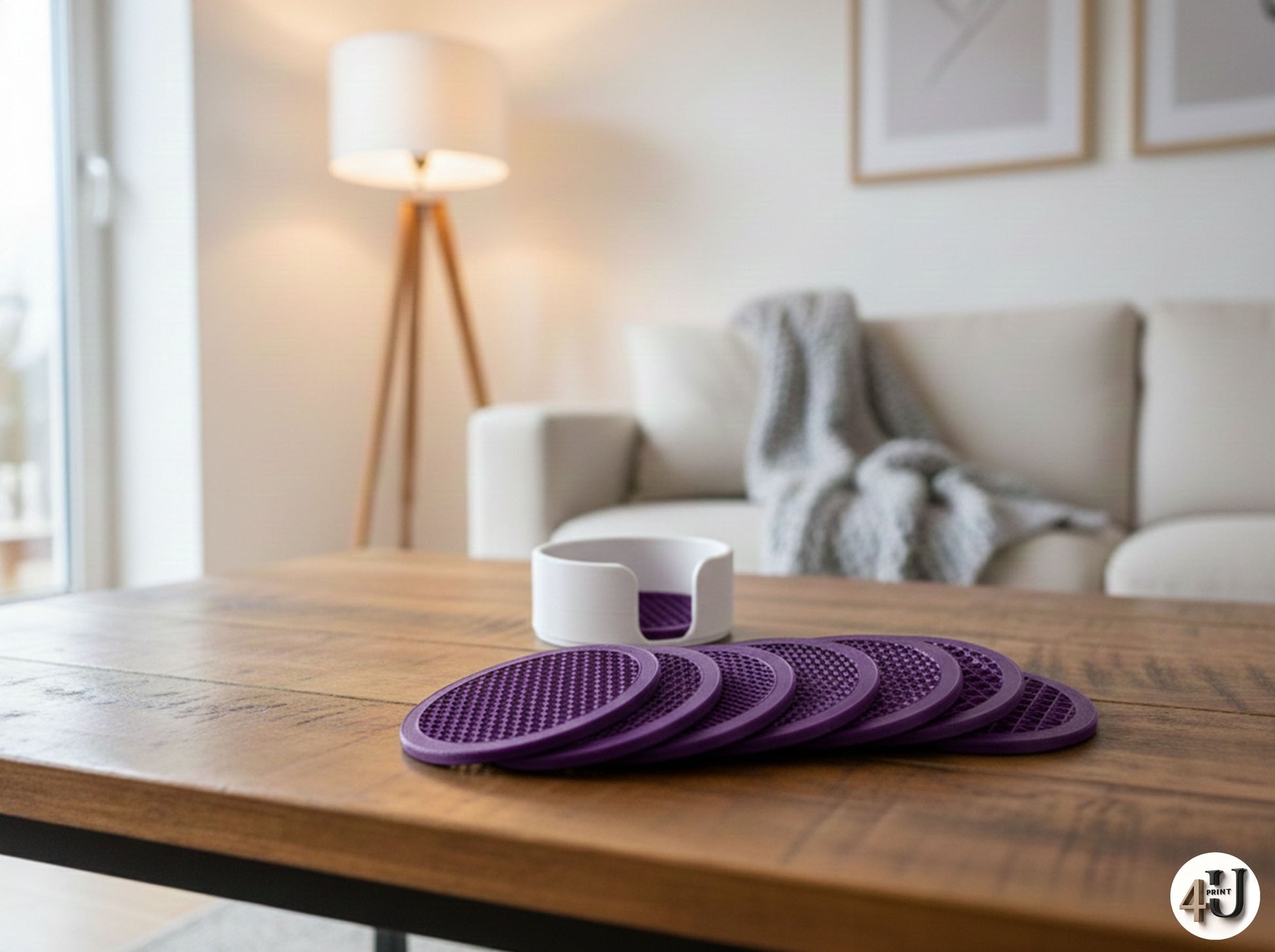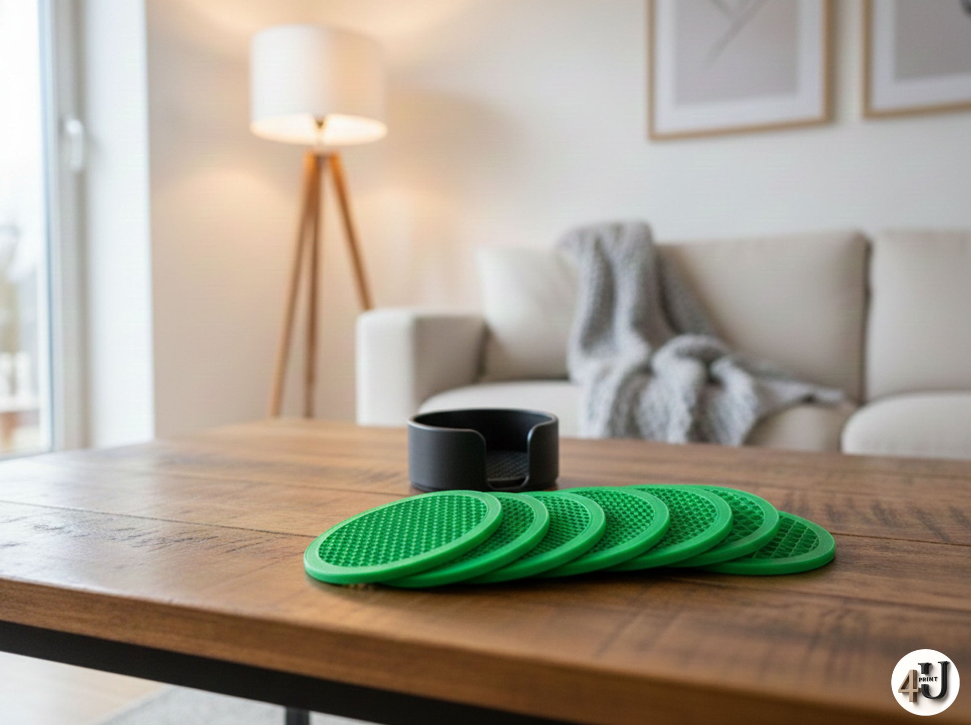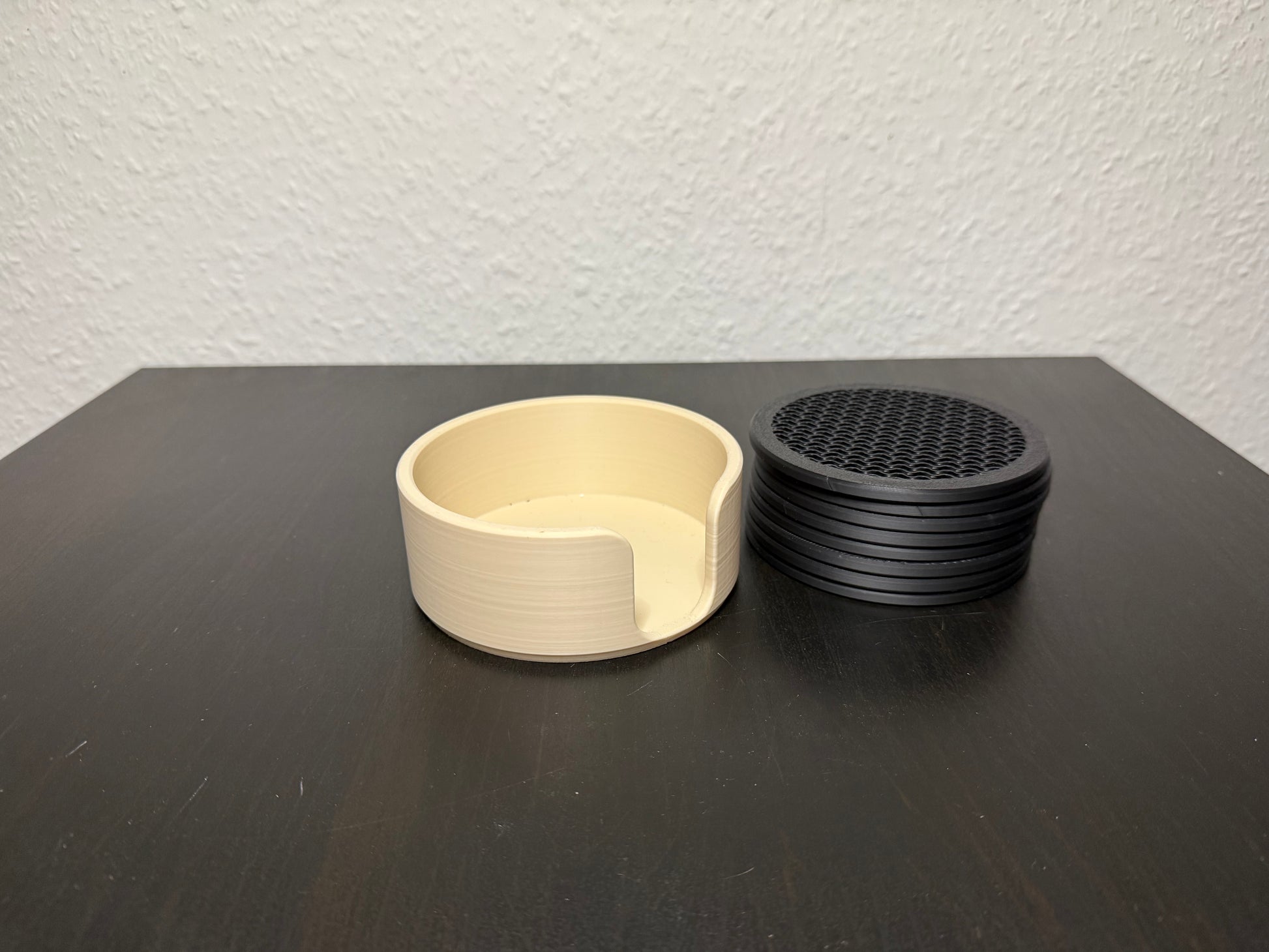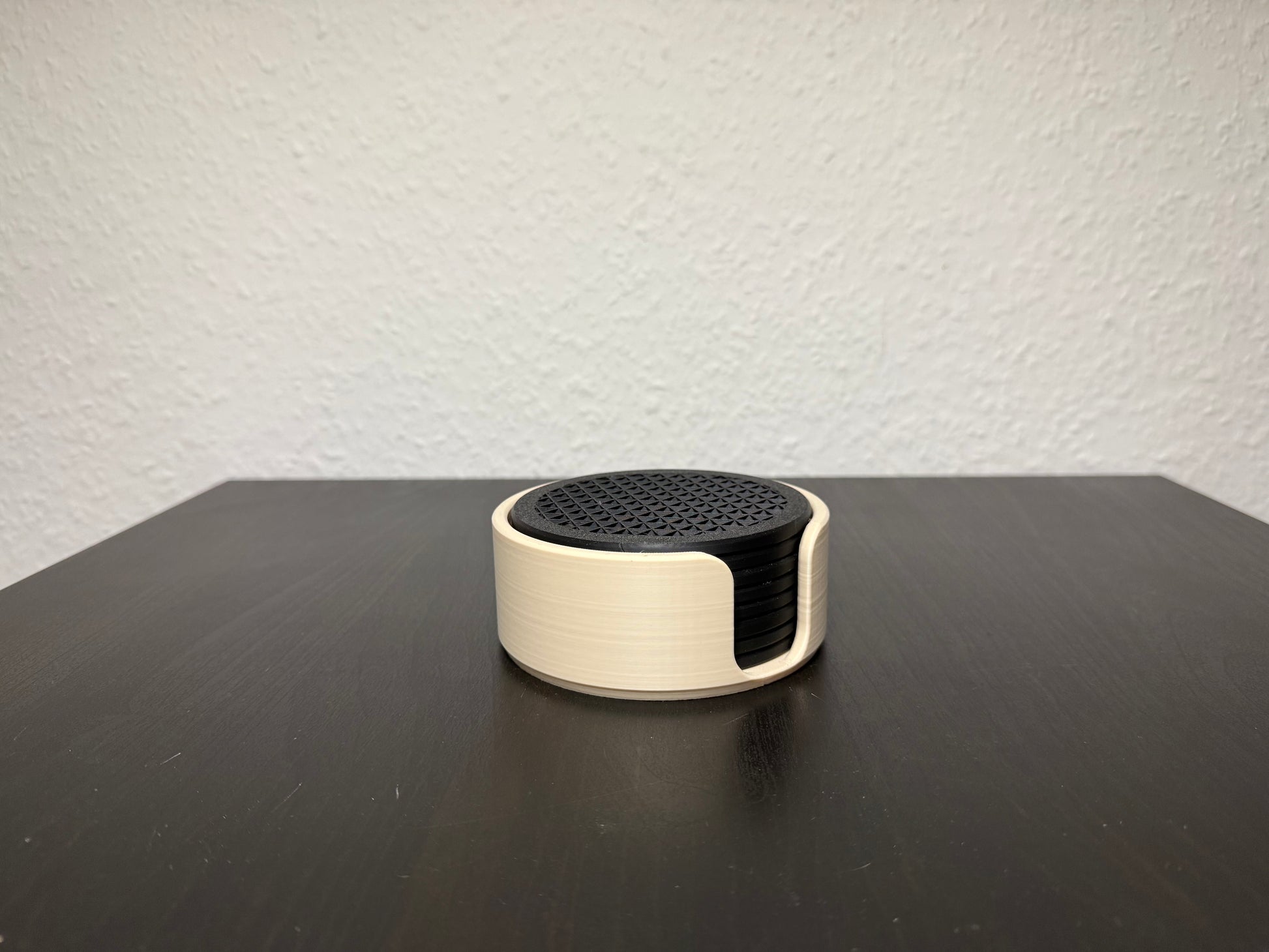 Dieser stilvolle 3D-gedruckte Untersetzer-Set bringt modernes Design und praktische Funktionalität auf deinen Tisch. Das Set besteht aus acht runden Untersetzern sowie einem passenden Halter, der für Ordnung und ein aufgeräumtes Ambiente sorgt.