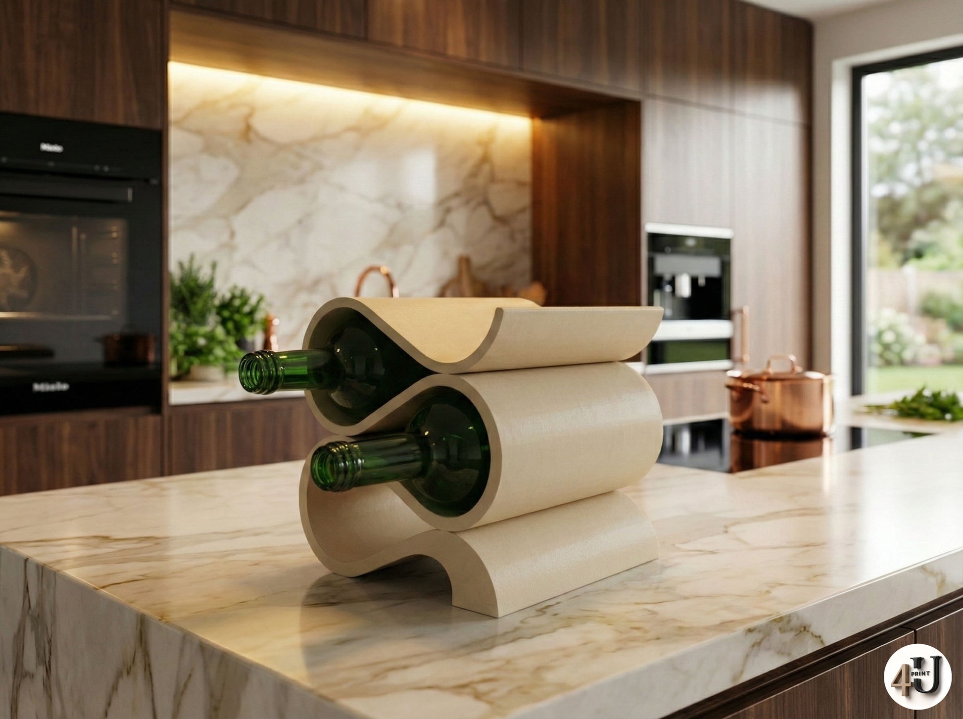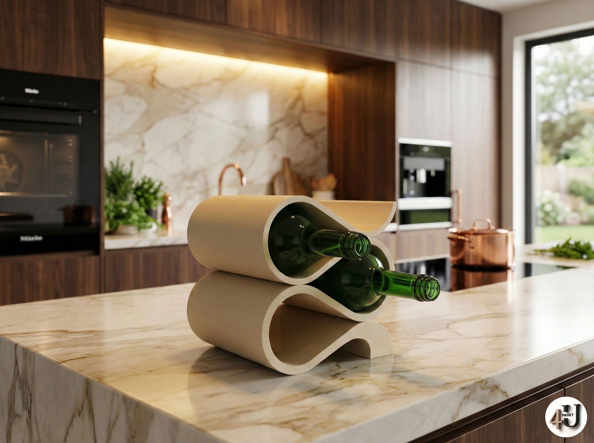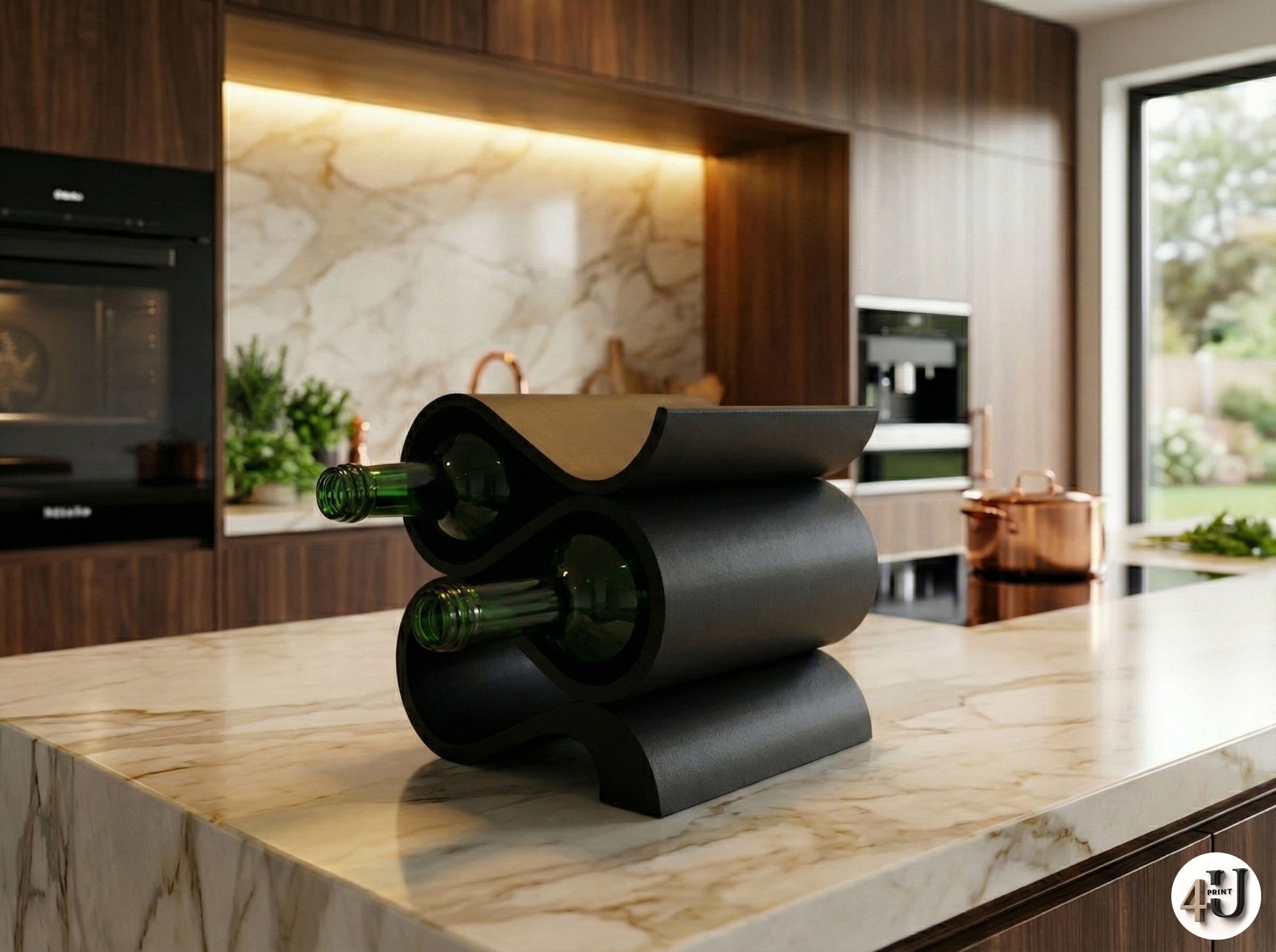 Dieser exklusive 3D-gedruckte Weinflaschenhalter ist mehr als nur praktisch – er ist ein elegantes Designobjekt für dein Zuhause. Mit seinen fließenden, modernen Linien setzt er bis zu drei Standard-Weinflaschen stilvoll in Szene und macht jeden Tisch, jedes Sideboard oder jede Hausbar zu einem echten Blickfang.